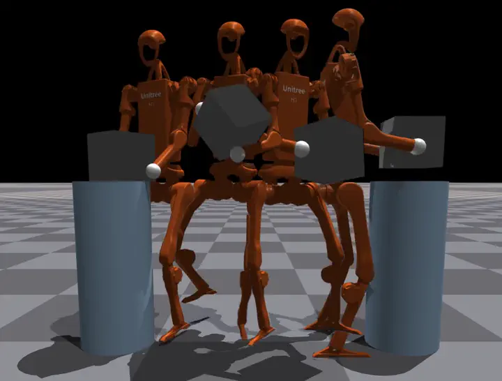 Loco-manipulation with H1 to transport a box with Constraints as Terminations.